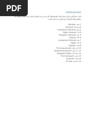 الرتب العسكرية بالانجليزي Pdf